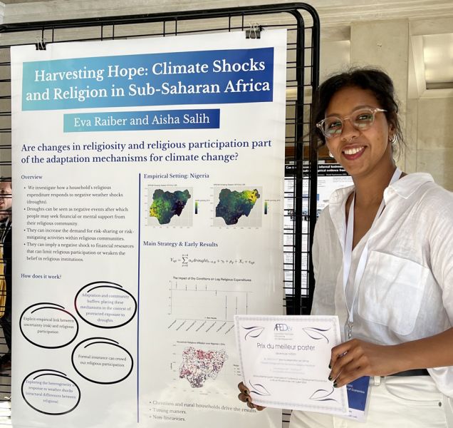 Aisha Salih, PhD at AMSE, received the Best Poster Award at the International Conference in Development Economics (ICDE) for her article "Harvesting Hope: Climate Shocks and Religion in Sub-Saharan Africa" co-written with Eva Raiber (AMU, AMSE).