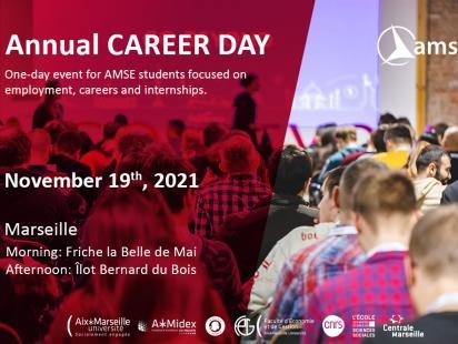 AMSE organize each year a Career Day during which students meet alumni and professionals. This annual meeting is part of the support given to all our students to ensure their employability.This year, the Career Day will be held on Friday, November 19 from 8:30am to 5pm.