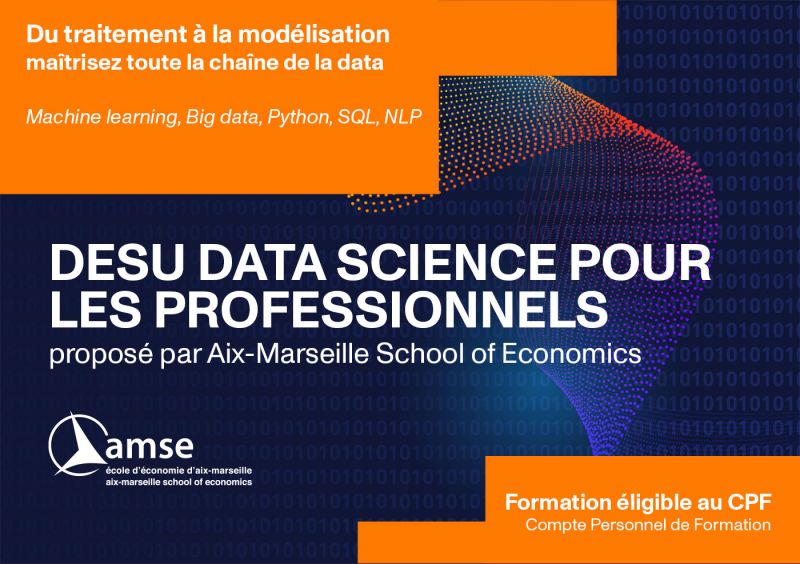 AMSE propose un programme court de 10 modules de formation en Data Science pour les professionnels dans le cadre de la formation continue.