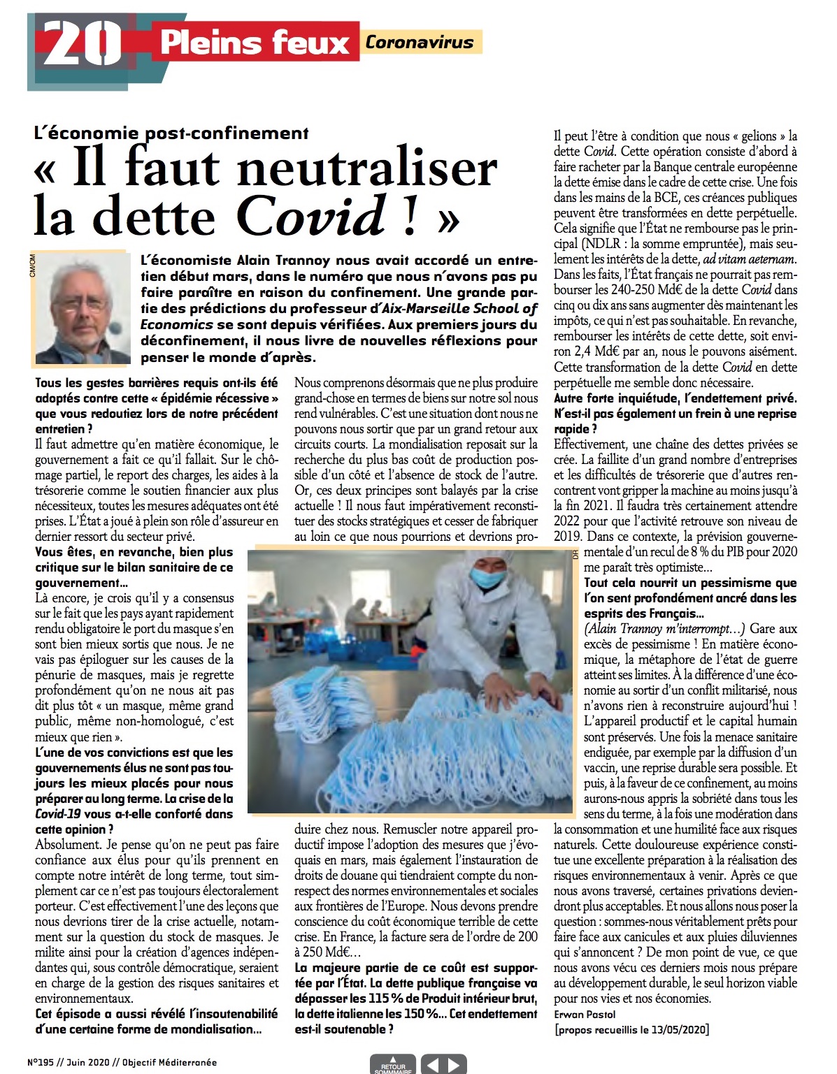 Cet entretien a été réalisé par le mensuel Objectif Méditerrannée, publié dans l'édition n°195 de juin 2020.