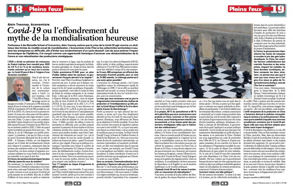 L'économiste Alain Trannoy s'entretient avec le mensuel Objectif Méditerranée et livre une lecture économique de la crise du Covid-19.