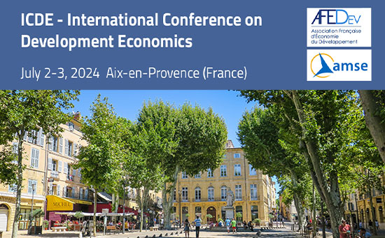 AMSE accueille la conférence internationale en économie du développement (ICDE), conférence annuelle de l’Association Française d’Economie du Développement (AFEDEV). L’AFEDEV fédère la communauté scientifique et professionnelle de l'économie du développement en France. Elle promeut la recherche, la formation et tous types de travaux impliquant une expertise scientifique dans ce domaine.