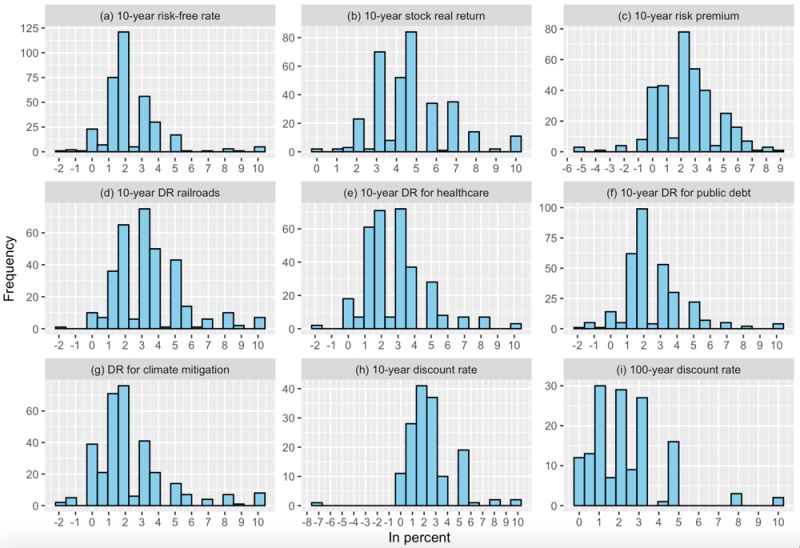 Figure 1. Histogram depicting risk-adjusting economists’ point estimates for different rates