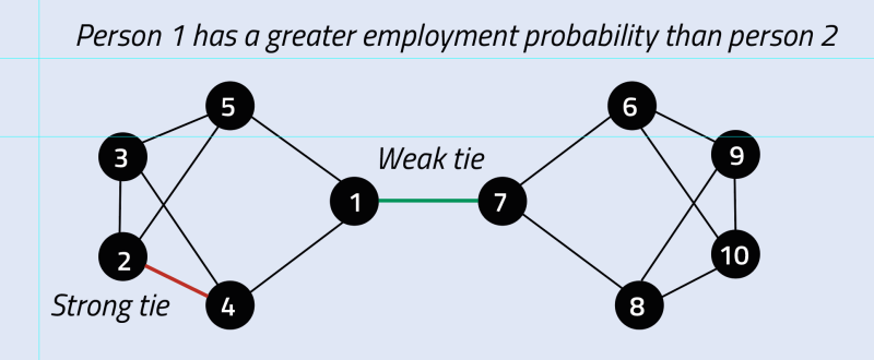 Secondly, our findings are based on the assumption that individuals share job information mechanically. However, the decision to share job information can also be strategic. Our understanding of the impact of networks on employment would benefit from exploring such strategic considerations when job information is passed on.