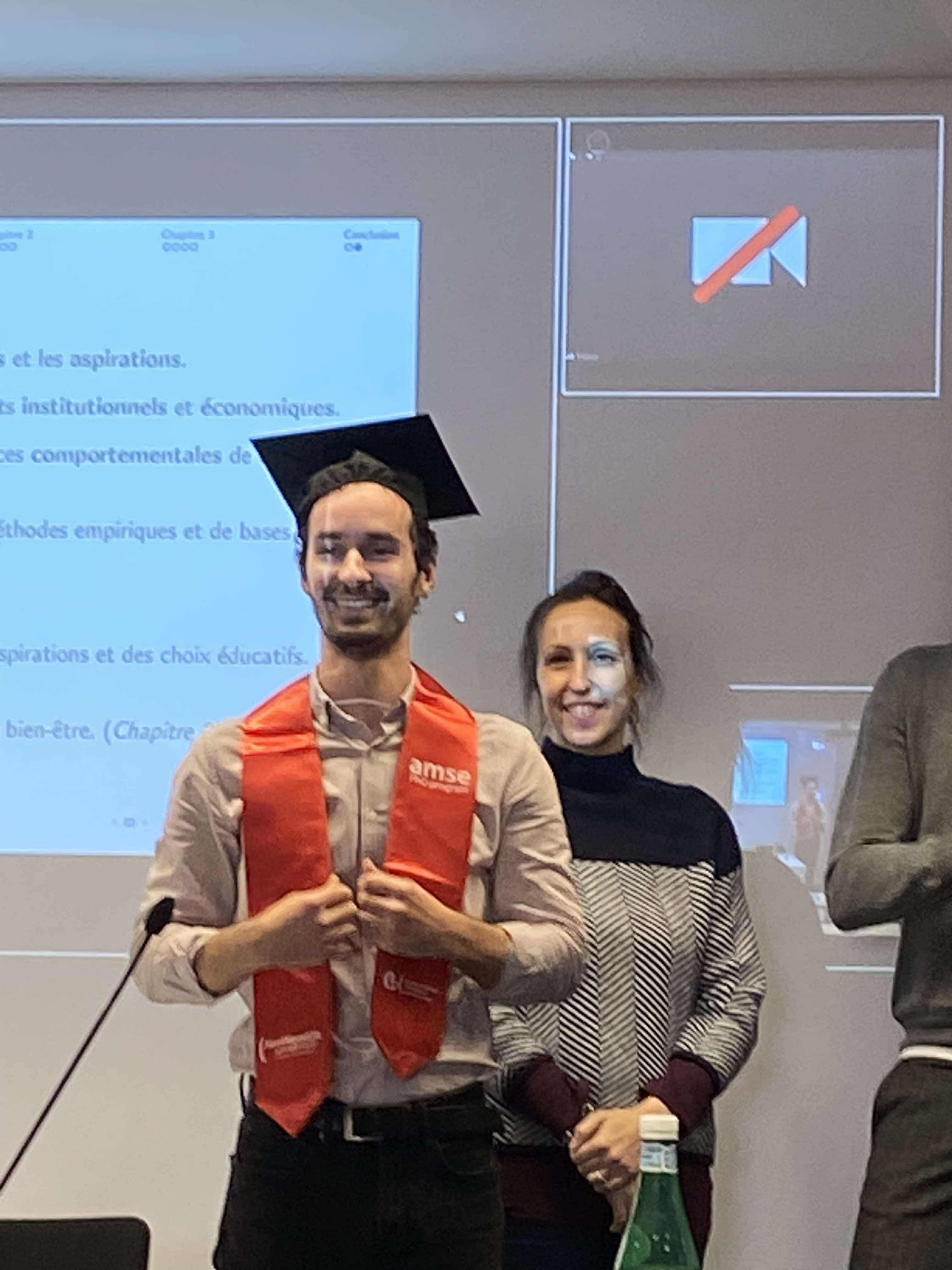 Congratulations Camille Hainnaux for having successfully defending your PhD thesis at Aix-Marseille School of Economics (AMSE) under the direction of Thomas Seegmuller.