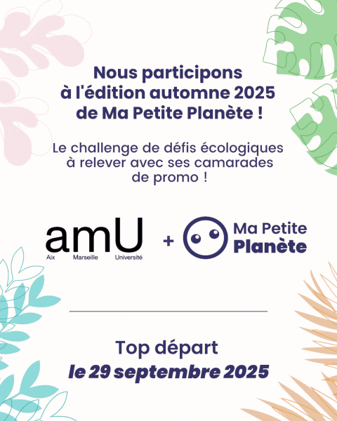 ↪ Ci-après le lien vers la page dédiée à ce challenge sur le site amU, qui synthétise toutes les informations clés : https://www.univ-amu.fr/fr/public/challenge-ecologique-ma-petite-planete-x-amu