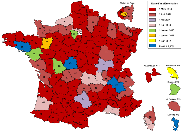 Figure 2 – Carte des départements selon la date de passage au nouveau taux