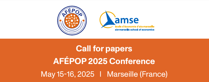 La conférence AFÉPOP 2025 se tiendra du jeudi 15 au vendredi 16 mai 2025, à l'Aix-Marseille School of Economics (AMSE). Les soumissions sont ouvertes jusqu'au 1er février 2025.